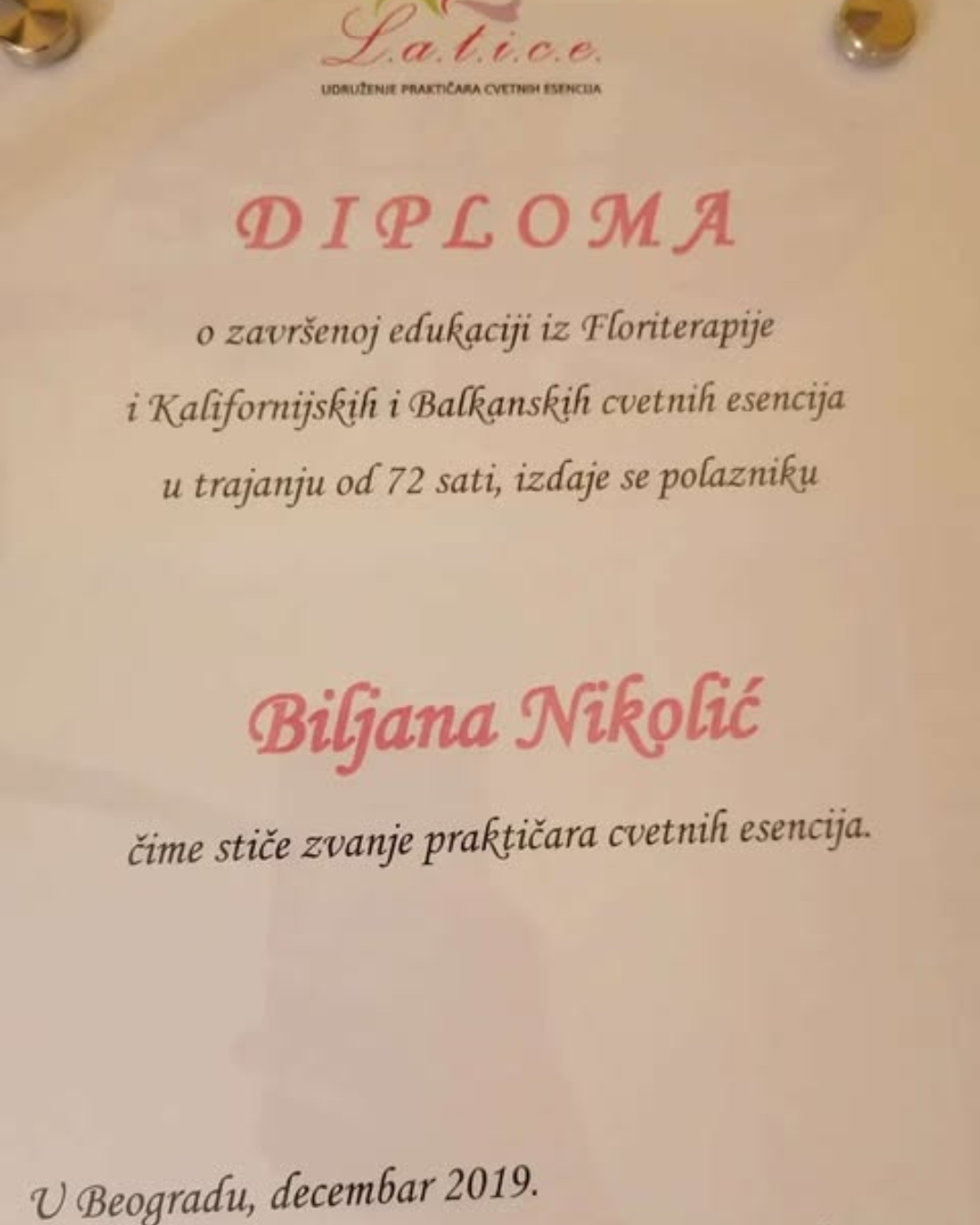 Završila sam edukaciju za Bahovog praktičara (BFRP) i dodatno se usavršila u radu sa kalifornijskim i balkanskim cvetnim esencijama. U svoj pristup uključujem i esencije ruže, jer verujem da upravo ruža otvara srce, budi nežnost i pomaže da se povežemo sa sobom na dubljem nivou.