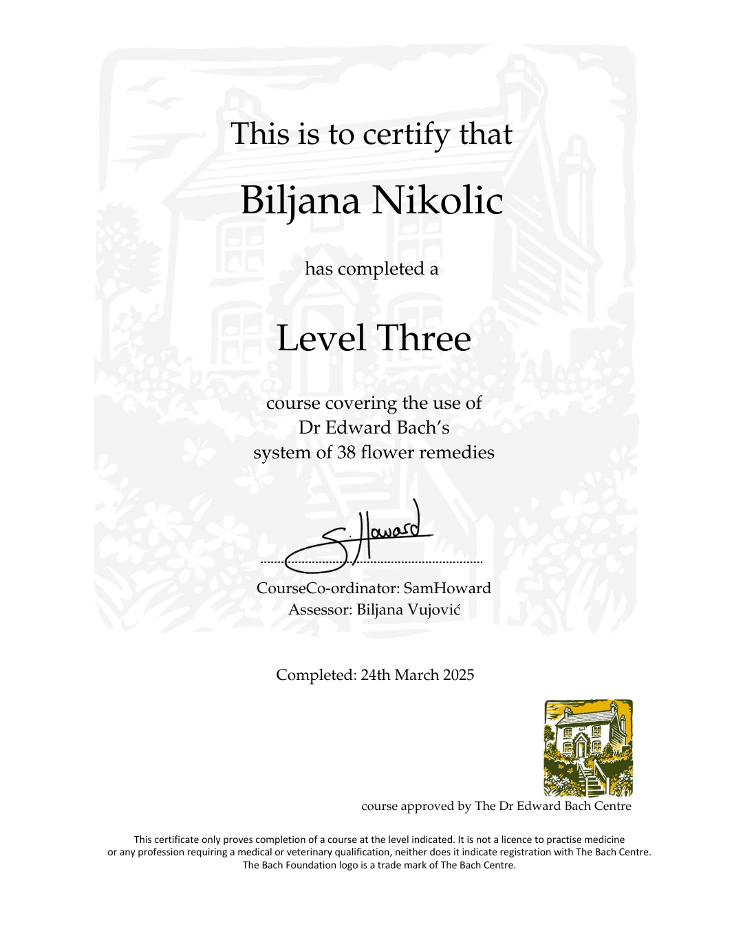 - BFRP-Međunarodno licencirani Bahov praktičar,