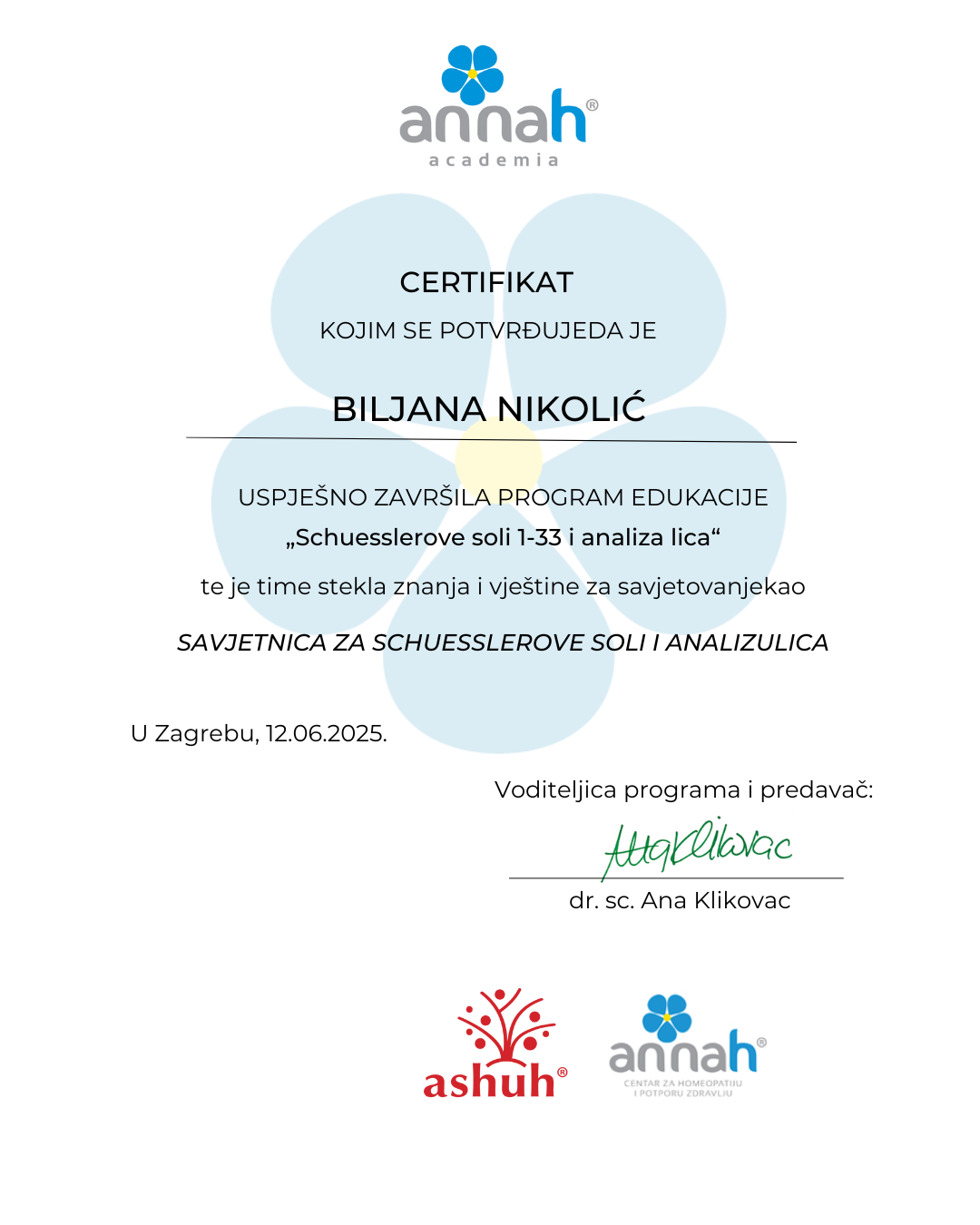 - Međunarodno registrovana – Savetnica za Schuesslerove soli 1-33 i analizu lica…